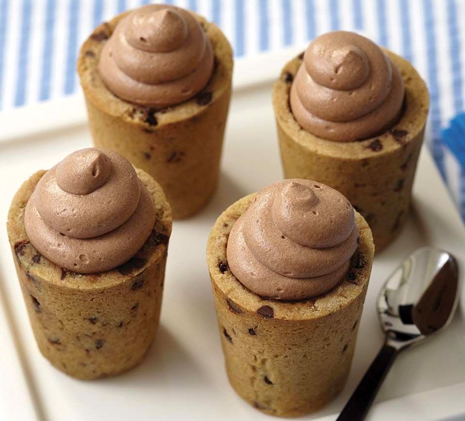 These mousse chocolate chip cookie shooters are so delicious, look amazing and are appropriate for any occasion! Surprise your family or guests with these rich and creamy treats or prepare them as a special party dessert. Here is the recipe:
