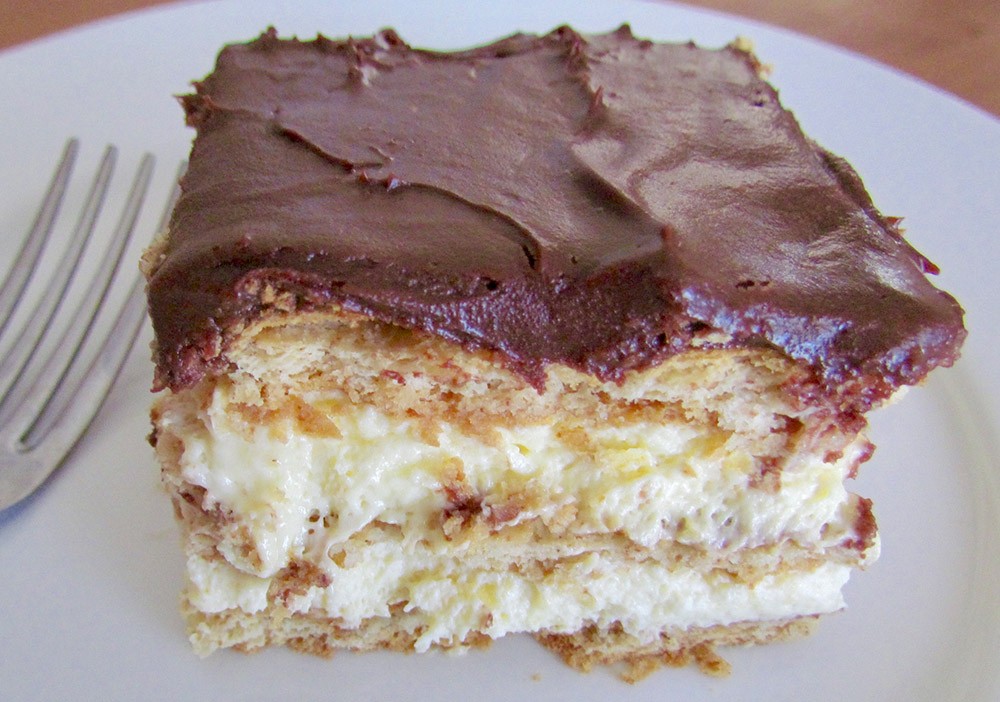 This banana éclair cake is so creamy and delicious! It is very simple to make. You will need 15 minutes to prepare it plus around 4 hours to set. Here is the recipe: