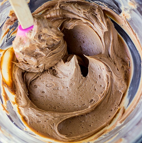 - Beat egg whites together with a pinch of salt until stiff – not dry. Then, in a separate bowl, whisk the Nutella and butter. Add in Frangelico, hazelnuts, and egg yolks. Fold in dark chocolate, mix again shortly. Next, fold in the egg whites.